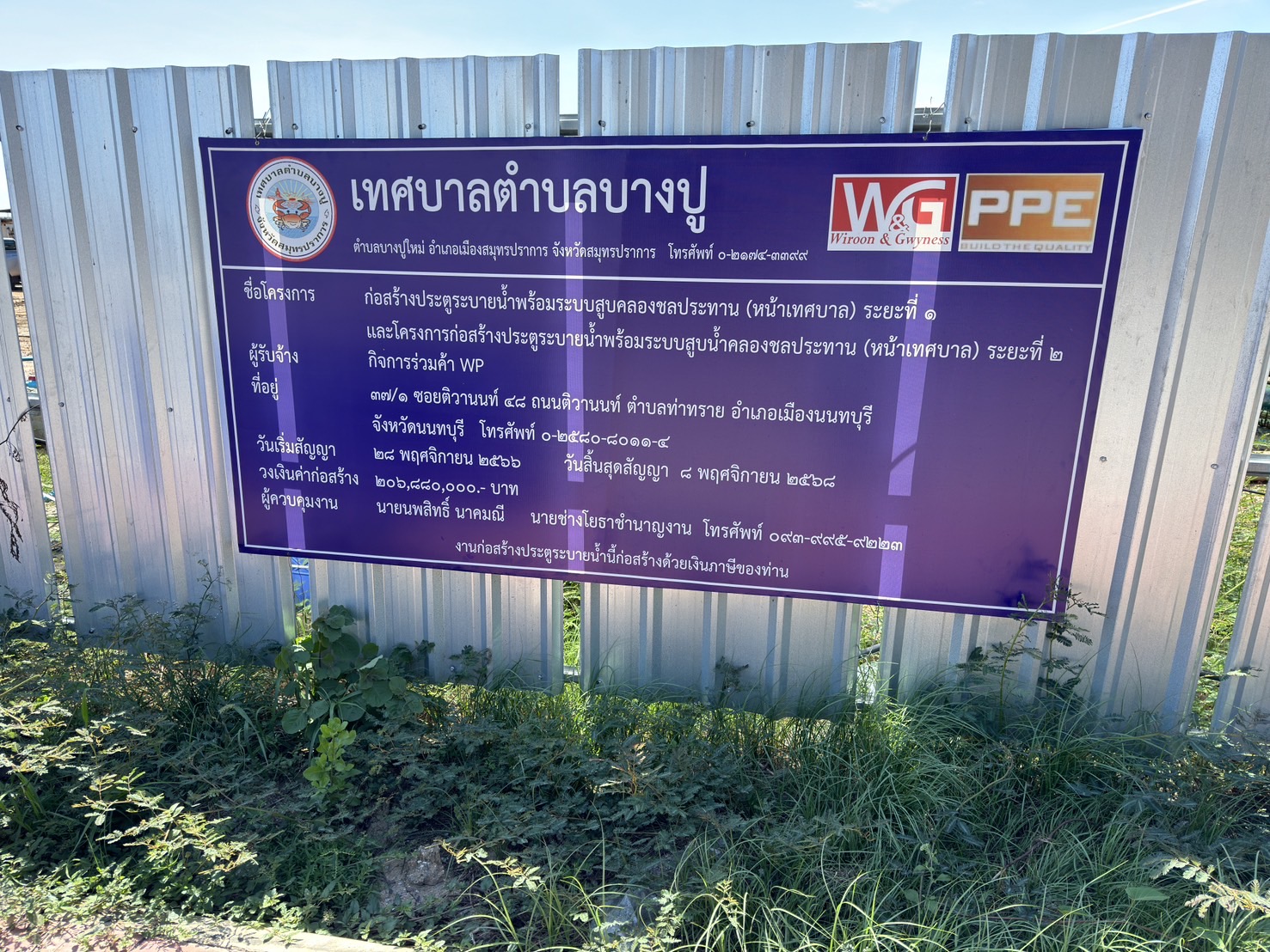 หน้างานเทศบาลบางปูของบริษัท วิรุฬห์ แอนด์ เกวนเนส โครงการก่อสร้างประตูระบายน้ำ